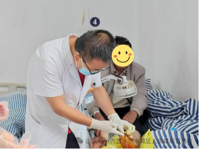 现场,水城区人民医院普外一科主治医师李雪松第一时间为患者进行创面处理与换药操作,并结合患者病情,对后续治疗方案的优化调整给出专业指导。而自张先生入院的10天里,果布戛卫生院全科主治医师周青青已带领同事们展开持续救治:通过清创引流清除坏死组织、外用药物促进创面愈合,同时辅以抗感染及对症支持治疗,目前患者病情已得到有效控制,整体状况趋于稳定。